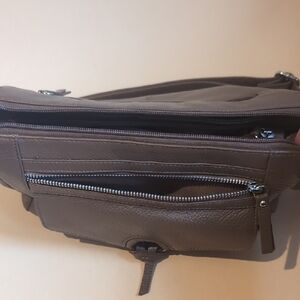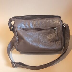 versatile genuine leather bag. Wide strap is adjustable to make it a shoulder bag or crossbody. Tons of pockets for organizing your everyday essentials.