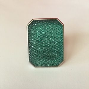 A fun fashion ring in aqua blue. Stretches to fit any finger. See photos for measurements. Smoke free home