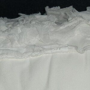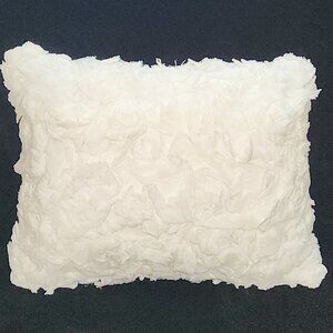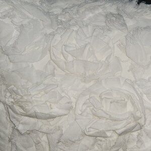Pre-owned, in very good condition. Tags removed. No zipper - cover not removeable. 3 white rosettes at top corner, the rest looks like torn tissue, plain back.