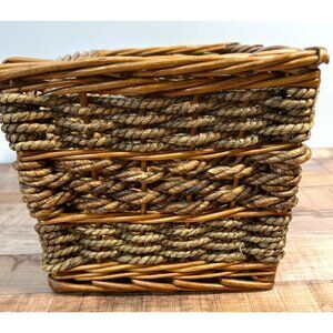 Rectangular Woven Seagrass & Wicker Storage Basket With Rope Accent Decorative O