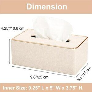🧿Suitable Size Tissue Box Cover: External Size: 9.8" L x 5.5" W x 4.25" H; Inner Size: 9.25" L x 5" W x 3.75" H. It's suitable for a Medium size Kleexxx tissue box. Standard size kleexxx tissues should be removed from the original box and refilled into our tissue box.