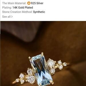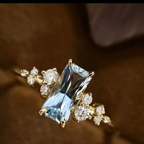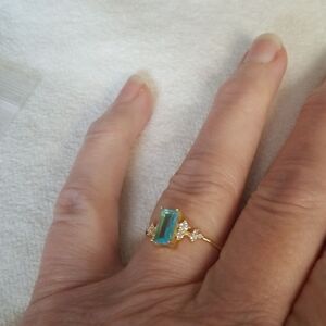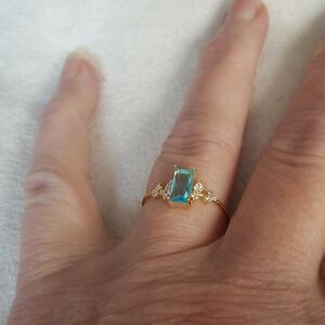 tiny CZ stones around a rectangular beautiful ocean blue stone