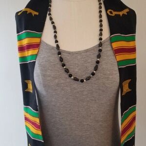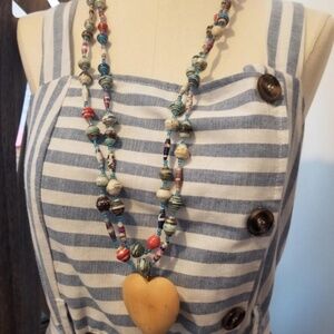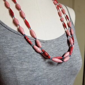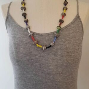 Our necklaces, bracelets and earrings come in a variety of lengths and colors, with the beads being made from paper by women in South Africa. Perfect for an eclectic boho flair! A very minimalist piece for the everyday wearer. Eco-friendly and fashionable too! These unique pieces are crafted with love and care, showcasing the vibrant colors and intricate patterns that are characteristic of African-inspired bohemian style. Made from recycled paper, these necklaces are not only a stunning accessory but also an eco-friendly choice. Embrace the eclectic charm of boho fashion with this one-of-a-kind necklace that effortlessly complements any outfit.