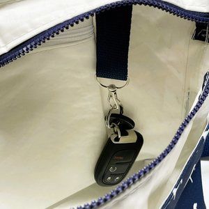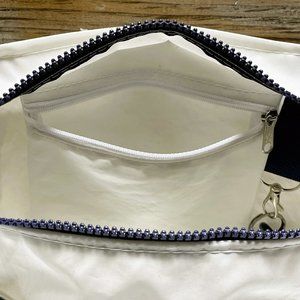 A sturdy but lightweight crossbody bag that is made with 100% recycled sailcloth and printed recycled outdoor fabric is perfect for everyday use. Soft and sturdy webbing strapping allows for adjustment to also make it a shoulder bag. Two exterior pockets in the printed fabric offer a great place to store your phone and sunglasses. Unzip the sports zipper and you will find ample interior room for your wallet or add one of our matching wristlets.