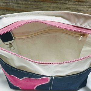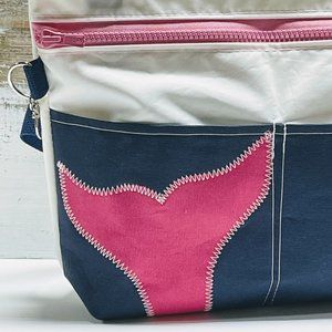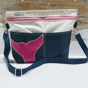 Recycled Sail Cloth Pink Whale Womens Crossbody Bag Handmade