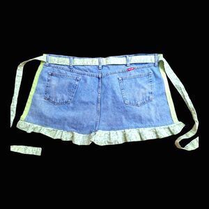 Recycled Upcycled Repurposed Wrangler Jeans Apron Pockets BBQ chef Waist Tie.