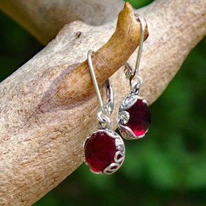 From broken antique glass and bottles reclaimed from the environment come these beautiful glowing sterling silver and glowing ruby glass glass earrings!
