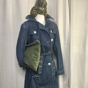 This was a vintage Vietnam War military duffle that I transformed into a multi-purpose eco-friendly clutch — great for travel. Works as a smaller laptop case too!