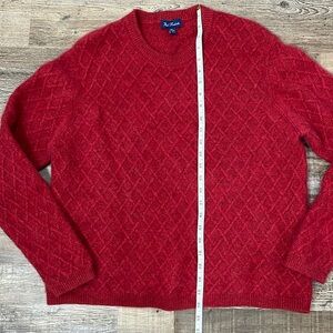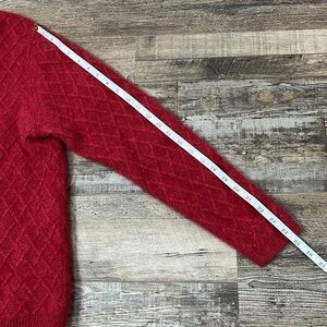 Red 100% Cashmere Diamond Cable Knit Sweater Sz L Holiday Fuzzy Preppy Shrunk