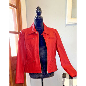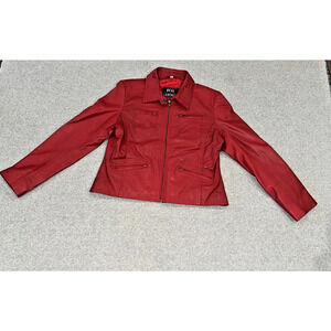 Red 100% Leather Ladies Size L Jacket