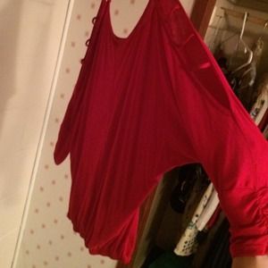 Red 100% Rayon Shirt; Open Slits On Arms. Elastic Fit On Bottom