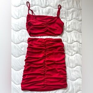 Red 2 piece cropped tank top & Ruched Skirt Set size XS