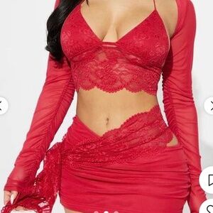 Red 3 piece skirt Fashion Nova Small but stretchy