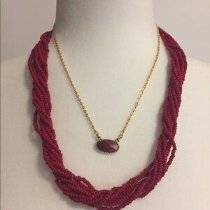 Twisted Multi Strand Raspberry Beads Red Necklace. Approx 22". Goldtone Clasp with Trifari logo. Never worn (just for my collections) Great to wear for special ocassions or just solid tshirt and a jeans. Perfect for layering too! Please feel free to ask questions. Thank You😊