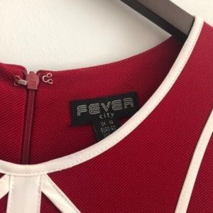 Red A-Line Fever London Dress with White Piping