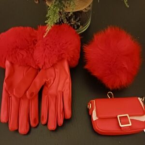 3) Red gloves with faux fur at wrists