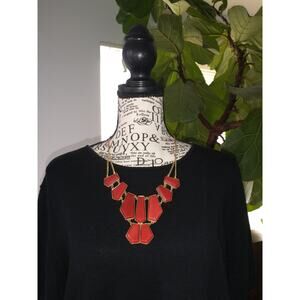 Red Acrylic Gold Tone Statement Necklace 22" Pretty Valentine's Date Night