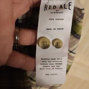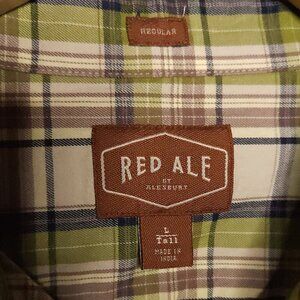 Red Ale men’s green tan plaid button down shirt Large Tall. Gently used condition. Measurements are: 27” sleeve, 29” from shoulder to hem, and 22” from armpit to armpit.