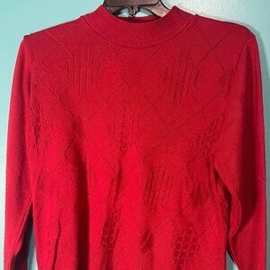 Ladies Alfred Dunner Red Sweater - Mock Turtle Neck, long sleeve with diamond design. Size Large