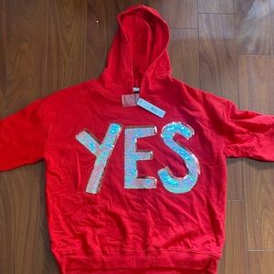 Red Alice + Olivia Sequin "YES" Hoodie, Size M
