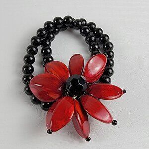 Red And Black Statement Flower Glass Beaded Stretch Bracelet 6" Sizabll