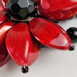 Red And Black Statement Flower Glass Beaded Stretch Bracelet 6" Sizable