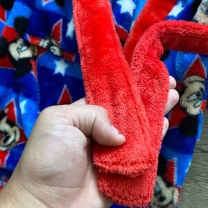 Soft plush robe with vibrant red and blue colors. Features Mickey Mouse Graphics