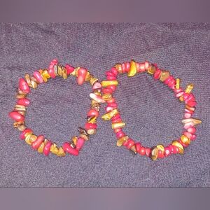 Elevate your style with our stunning bracelet set featuring brown-golden raw-cut and vibrant red roughly cut polished natural gemstones! These unique pieces blend earthy elegance with bold pops of color, perfect for adding a touch of nature’s beauty to any outfit. Handcrafted with care, each bracelet is a one of a kind treasure. Grab yours today and make a statement! Size 6 inch paired with size 7 inch Made with stretchy elastic!