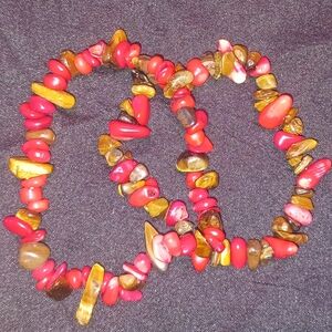Red🪸 And Brown Golden🐅 Beaded Bracelet set