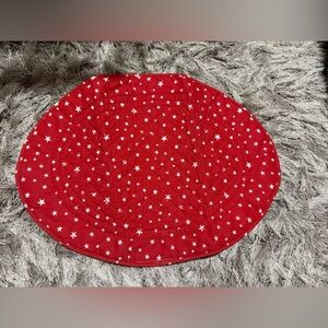 This set of 4 red and white star quilted placemats is perfect for adding a touch of charm to your dining table. Made from a comfortable cotton blend material, these placemats feature a stylish quilted design that will complement any dining setting. The red color adds a pop of color to your table setting, making it a fun and festive addition to your home decor. Perfect for everyday use or special occasions, these placemats are a practical and stylish choice for your dining experience.