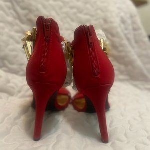 Red Ankle Spike Heels - Size 7-1/2