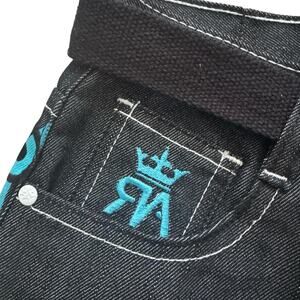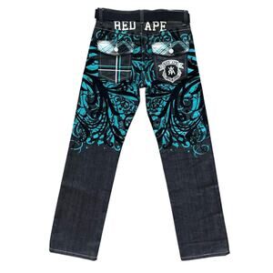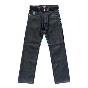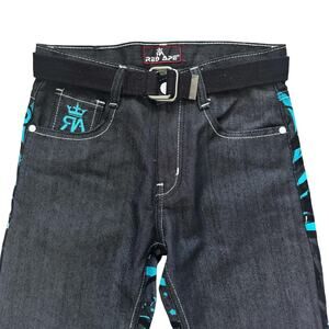 Red Ape Jeans Boys Medium Black Blue Graphic Straight Leg Denim Pants Belt