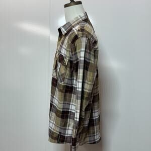 Red Ape Shirt Mens 2XL Tan White Yellow Plaid Western Cowboy Gold Button Accent Pockets Long Sleeve