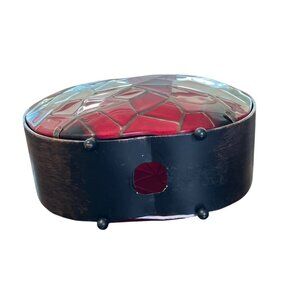 Red Apple Tiffany-Style Stained Faux Glass With Green Leaves 3D 10x8x4