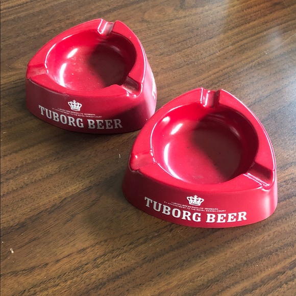 Vintage Tuborg Beer ashtray set. Made in Italy.