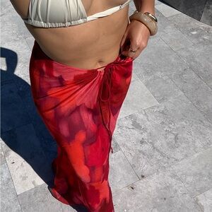This striking red blouse features an asymmetrical design with elegant ruffles, offering a unique and stylish look. The vibrant color and flowing silhouette make it a standout piece for any wardrobe. Perfect for adding a touch of sophistication to your ensemble.
