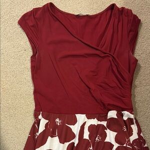Red Asymmetrical Wrap Dress with Cap Sleeves