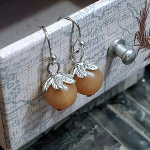 SIZE (average/approximate): earrings are about 27mm long overall; beads are about 10mm round, bead caps are about 11mm across