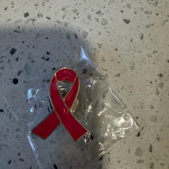 Show your support with this elegant red awareness ribbon pin. Perfect for any occasion.