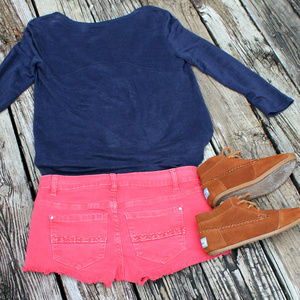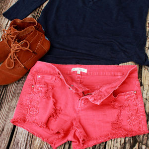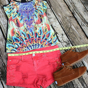 Red Aztec Distressed Denim Shorty Shorts Cutoffs 1