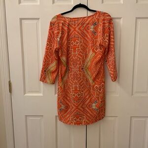 Silk like tunic. Signs of wear. Cute easy summer dress. Made in the USA