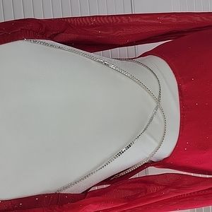 Red Diamond Chained Backless Dress. Sheer long sleeves. Silver Sparkle throughout Dress. Such a gorgeous dress on! worn once.