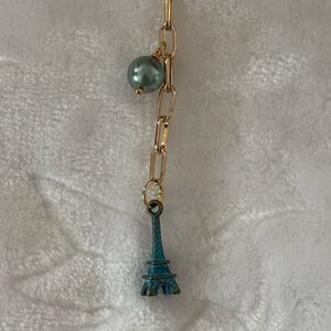 🌸 Green Faux Pearls & Gold Chain with Eiffel Tower Accent