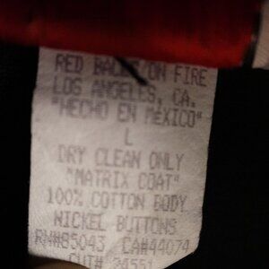 Red Balls on Fire Matrix coat men's large black denim full length vintage Y2K