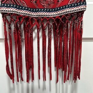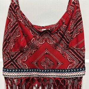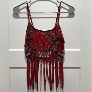 EUC Red Bandanna Print Crop Top With Fringe Approximate Flat Lay Measurement: 15” Across chest