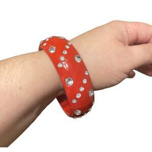 Beautiful Bright Red Bangle with Rhinestones in very good condition with no cracks or chips. Great Look!!