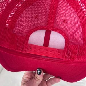 Stand out with this vibrant red baseball cap featuring a breathable mesh back and structured front panel. The adjustable snapback ensures a perfect fit for most head sizes, while the curved brim provides classic style and sun protection. Ideal for workouts, casual outings, and sporty streetwear looks. Keywords: red baseball cap, mesh trucker hat, adjustable snapback, breathable hat, unisex hat, sports accessory, casual cap, streetwear.