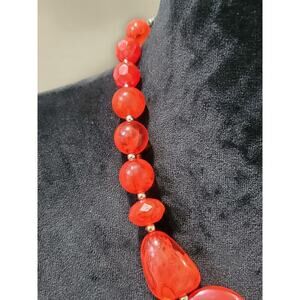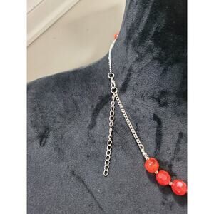 Red Bead Strand Gold Tone Women Jewelry Simple Style Necklace.