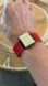 Red Bead and MOP wrap Bracelet chunky wide mother of pearl on wood bracelet