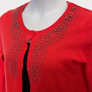 Red Beaded Neckline Button Up Cardigan